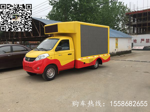 福田奥铃T3LED广告车,国五排放标准,带环保公告,上蓝牌,专项作业车行驶证,全国上户无忧,整车型号:CLW5020XXCB5,柳州五菱汽油发动机87马力(67千瓦),货箱长约3米,用户可根据自己的需求,选装单面彩屏、双面彩屏、三面滚轴、三面玻璃等配置,也可选装屏幕液压举升、搭建舞台、各种车身颜色等。福田奥铃T3LED广告车价格实惠、配置齐全、售后服务到位,是选择小型广告车的用户***!
